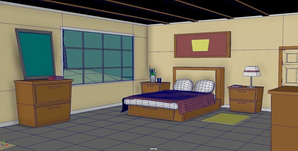 Free low poly cartoon bedroom set with working drawers and door.